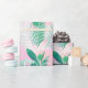 Esta elegante pintura color rosa y de menta de hojas tropicales de palma de hojas de follaje con un bonito y exótico diseño de vegetación que combina a la perfección los colores pastel en tonos rosa y la menta, con un toque de blanco, color rosa, melocotón, verde claro. El exclusivo estilo de pintura resalta un ambiente tropical elegante y sofisticado, lo que lo hace ideal para eventos de verano únicos o suministros de fiesta de selva urbana de moda.