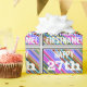 Este divertido diseño de papel envolvente con temática de cumpleaños incluye un mensaje como "¡FELIZ CUMPLEAÑOS 27, FIRSTNAME!", donde el nombre se puede personalizar. El fondo está decorado con unas rayas multicolores y vibrantes. El texto del mensaje es de color blanco y tiene una apariencia angustiada. El envolvimiento de papel como este podría ser usado cuando se envuelven regalos o regalos que se le dan a alguien que está celebrando su vigésimo séptimo cumpleaños. [~Z0000272]