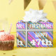 Este divertido diseño de papel envolvente con temática de cumpleaños incluye un mensaje como "¡FELIZ CUMPLEAÑOS 47, FIRSTNAME!", donde el nombre se puede personalizar. El fondo está decorado con unas rayas multicolores y vibrantes. El texto del mensaje es de color blanco y tiene una apariencia angustiada. El envolvimiento de papel como este podría ser usado cuando se envuelven regalos o regalos que se le dan a alguien que está celebrando su cumpleaños cuarenta y siete. [~Z0000272]