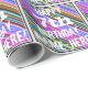 Este divertido diseño de papel de envoltura con temática de cumpleaños incluye un mensaje como "¡FELIZ CUMPLEAÑOS, NOMBRE AQUÍ!", donde el nombre se puede personalizar. El fondo está decorado con unas rayas multicolores y vibrantes. El texto del mensaje es de color blanco y tiene una apariencia angustiada. El envolvimiento de papel como este podría ser usado cuando se envuelven regalos o regalos que se le dan a alguien que está celebrando su sétimo cumpleaños. [~Z0000272]