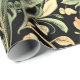 Victorian-style floral pattern featuring yellow and muted orange flowers with green foliage set against a stark black background.