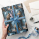Un anciano vestido cálidamente se sienta en un tronco en un bosque nevado con un conejo de pino brillante que se parece a un pequeño árbol de Navidad.