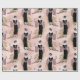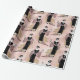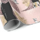 Papel de regalo de vino vintage parisino rosa dorado y rosa beige con patrón art nouveau.