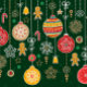Ornamentos de Navidad dibujados a mano sobre fondo verde