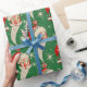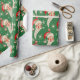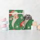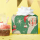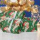 Este vintage papel de envoltura navideño presenta un fondo festivo verde adornado con rostros de Santa Claus, ornamentos rojos y blancos y brillantes copos de nieve. La alegre cara de Santa con una barba blanca y una gorra roja le da un toque clásico a este diseño atemporal.
