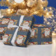 Cute Slate Blue Santa Claus Bluebirds - Navidades caprichosos de arte deco envuelto papel.