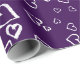 Papel de regalo violeta con corazones blancos