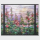 La reproducción floral de la ventana del vintage del arte del vitral magnífico de Nouveau Tiffany representó la belleza de un campo de hollyhocks en tono púrpura romántico contra el cielo de la puesta del sol está en este papel de envoltorio para regalos.