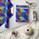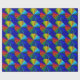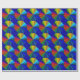 Este papel de envoltura colorido presenta un patrón repetido de un círculo abstracto de colores brillantes de un vórtice arcoiris. Las líneas en cada color del arco iris conducen al centro: rojo, naranja, amarillo, verde, azul y violeta. Se crea un efecto tridimensional.