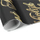 Vrolijk Kerstfeest Holandés Feliz Navidad Patrón de texto dorado Tipografía Elegante Moda Relieve metalizado dorado Faux negro y dorado Mensajes de texto Glossy Regalo Envoltura Papel de vacaciones Navidades de temporada Regalos