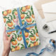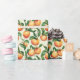 This wrapping paper features a cheerful design of ripe peaches with lush green leaves, creating a vibrant and fresh look. The color palette includes warm oranges and greens on a clean white background, evoking a summery feel. Perfect for gift wrapping or festive occasions, this playful pattern adds a touch of nature's charm to any present. Its lively theme is ideal for celebrations like birthdays or thank-you gifts, bringing joy and warmth to your wrapped treasures.