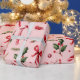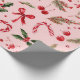 Featuring a charming hand-painted pattern of candy canes, red bows, holly leaves, pine sprigs, and bright cherries — all set against a soft blush pink background — this design brings a cozy yet luxurious feel to every present.