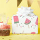 Cute acuarela sandía helados de sandía cutáneo patrón papel de regalo de cumpleaños para una fiesta de cumpleaños de verano. Rosa y verde sobre blanco.