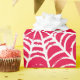 La telaraña de una araña se forma en un audaz vacío de color rosa.