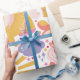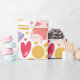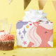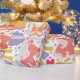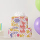 Un patrón vibrante y juguetón con alegres unicornios rodeados de arcos, soles, estrellas, mariposas, corazones y joyas brillantes. La paleta de colores animada es rosa, violeta, amarilla y blanca, creando un ambiente mágico y alegre.
