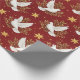 A Christmas Wrapping Paper Of White Doves And Golden Stars On Red For Christmas Gifts