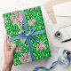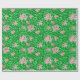 Papel envuelto en un estilo William Morris Art Nouveau de flores de miel sobre un fondo de viñas y hojas - flores en tonos rosas, con hojas verde esmeralda, en un fondo verde pastel