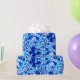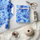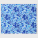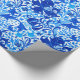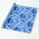 Papel envuelto en una huella floral vintage de William Morris de lirios estilizados e irlandeses, realzada digitalmente y coloreada, en tonos de azul cobalto profundo, azul ceruleño y azul celeste claro sobre un fondo blanco