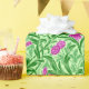 Papel envuelto en un William Morris, Art Nouveau, imprenta textil de iris y hojas, realzada digitalmente y coloreada, en morado magenta y rosa orquídea, con hojas de color esmeralda y verde lima, sobre un fondo verde pastel