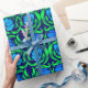 Papel envuelto en un patrón textil de William Morris vintage de flores y hojas impermeables estilizadas - flores en un gradiente de azul ceruleño profundo a claro, con hojas verde limón, sobre un fondo azul cobalto oscuro