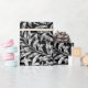 Papel envuelto en un patrón de William Morris vintage de ramas de sauce estilizadas, en tonos gris plateado/gris, gris grafito y blanco sobre fondo negro