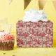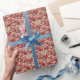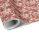 Sumérgete en un tranquilo maravilloso paisaje invernal con este encantador patrón vacacional, con casas nevadas y árboles brillando en las luces festivas sobre un fondo rojo de marfil.