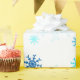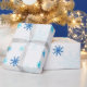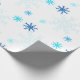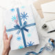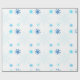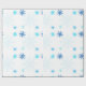Fondo azul claro con un patrón repetido de copos de nieve que dan un diseño festivo y de invierno.