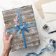 Añada un toque encantador a sus regalos a estos Navidades con este Wood White Snowflakes Feliz Navidad envuelta