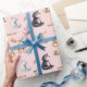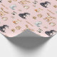 Pink baby shower for girl mom wrapping paper with cute woodland animals. .