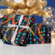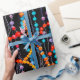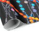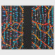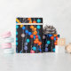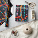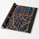 An abstract design of colorful beaded strings covers this wrapping paper.