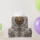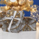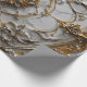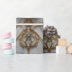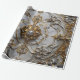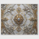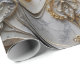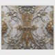 A silver and gold design resembling an opulent ceiling medallion covers this elegant wrapping paper.