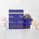 Wrappingpaper brillante con nombre personalizado. El rojo y el verde colorearon el papel de embalaje de las luces de las Felices Navidad para las mujeres y los niños de los hombres. Diseño con clase del día de fiesta con las bolas colgantes coloridas de la bombilla y estaciones del personalizado que saludan el mensaje. Personalizable con el nombre del adulto o del niño. Giftwrap de la diversión con las decoraciones de Navidad. Color de fondo púrpura o de encargo. Letras elegantes de la tipografía.