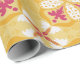 Yellow and pink floral-patterned wallpaper, unrolled and flat. The design features symmetrical flowers and leaves, creating a cheerful, vibrant tone.