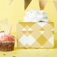 Papel envuelto con patrón de gingham amarillo. ©Janet Palaggi
