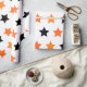Añade un toque mágico a tu Halloween con este patrón brillante y cereza de estrellas negras y dos tonos de estrellas naranjas contra un fondo blanco.