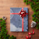 Copos de nieve azules y blancos sobre nubes blancas bajo un cielo estrellado.