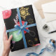 Este Año Nuevo y los Navidades envuelven papel con un patrón de Juguetes de árbol verde y rojo con copos de nieve brillantes dorados en el fondo negro es perfecto para tus regalos. Disfrútalo.