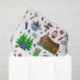 Papel de envolvimiento de cumpleaños con temática de camping. Campistas RV de mano, carpas, fogatas, S'mores, pesca, botes y otras divertidas herramientas de camping.