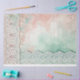 Un delicado patrón de acuarela en verde pastel y melocotón, bordeado con encaje en dos lados.