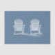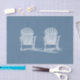 La playa de Adirondack está equipada con sillas rústicas de tela de tela blanca azul claro. Casa de playa de veraneo. Derechos de imagen de Marg Seregelyi Photography.