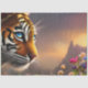 Cubo de tigre teñido de azul- flores y telón de fondo montañoso Arte de IA creado por minx267