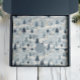 Moderno, suave y nevado Navidad azul y crema salpicado de pequeñas y detalladas casas y árboles monocromáticos azules.