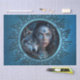 Alianza celestial el lobo y la hermosa mujer. Escena mística en la que una mujer y un lobo se paran uno al lado del otro contra un telón de fondo cósmico e impresionante. Ambas figuras poseen ojos azules luminosos y llamativos que miran profundamente hacia el alma, revelando una conexión con la extensión infinita del universo. La mujer está rodeada por un aura celestial. Un símbolo con forma de estrella está estampado en su frente, simbolizando su poder espiritual y su conexión con las estrellas. El lobo está a su lado, alerta y orgulloso. Su mirada es igualmente intensa y misteriosa para la de la mujer, lo que indica una profunda conexión entre las dos.