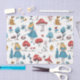 Papel de envolver de Alicia Vintage en el Ilustracion de la Tierra de las Maravillas con Alicia, conejo, setas rojas y flores para envolver regalos y tus proyectos de desacoplamiento.