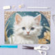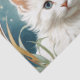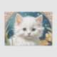 Papel de tejidos con gatito al estilo Art Nouveau de Alphonse Mucha! Un gatito blanco y mullido con ojos azules posa con flores amarillas. ¡Un regalo para los amantes del gato y de los coleccionistas Art Nouveau!