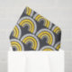 Este papel tisular bonito y caprichoso presenta un arcoiris bohemio amarillo y gris sobre un fondo gris oscuro.