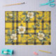 Papel De Seda Amarillo rústico y negro con flores blancas d