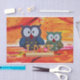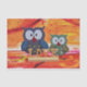 Sorprende a tu ser querido con estos dos lindos búhos en un fondo naranja con el texto "amor".