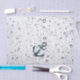 ¡Maravilloso para los acontecimientos temáticos náuticos o de la playa! Este diseño es grande para cualquier persona que disfrute del océano y de las actividades relacionadas, incluyendo: canotaje, pesca, esquí acuático, practicando surf, deportes acuáticos nadando, navegando, y otro. También diversión para el personal militar y los veteranos, notablemente de la marina de guerra, de los infantes de marina, y de las marinas mercantes. Un ancla azul de la pizarra del smokey con la cuerda blanca es sumergida, mostrado por las burbujas de aire. El fondo es blanco y gris plateado, pero un tinte sea añadido fácilmente haciendo clic "personalizar él" y eligiendo un color.