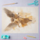 Esta pintura acuarela presenta un impresionante retrato de un ángel celeste que desciende desde arriba. El ángel, con serenidad y expresión compuesta, tiene el pelo dorado que corre armoniosamente con su toga dorada que se nubla.